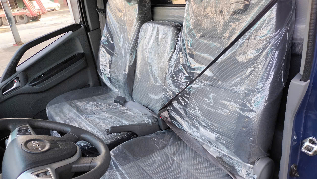 Khoang lái của JAC N250S Pro E5 được thiết kế rộng rãi, ghế bọc nỉ êm ái, điều hòa 2 chiều, kính chỉnh điện, vô-lăng trợ lực điện kết hợp công nghệ ga tự động giúp tài xế giảm mệt mỏi khi di chuyển đường dài.