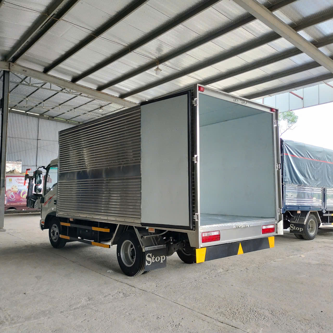 Thùng xe được đóng chắc chắn bằng inox hoặc composite tùy chọn, phù hợp chở hàng điện tử, thực phẩm, đồ gia dụng, hàng dễ hư hỏng.